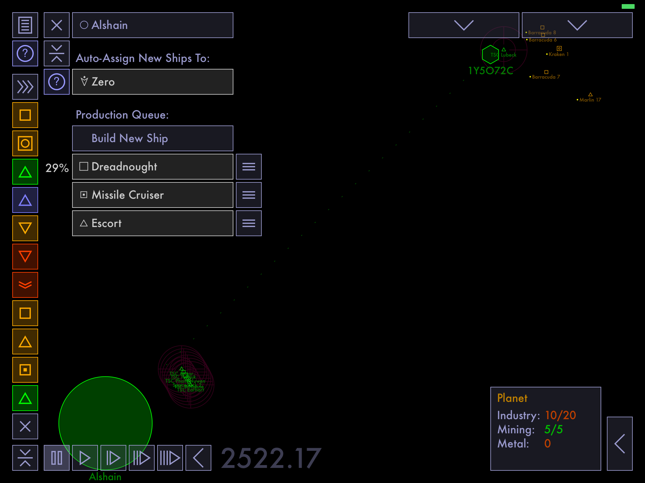 Praise for Tactical Space Command"Tactical Space Command is all about substance... TSC is a uniquely complex game on iPad, one that is very rewarding." [4 out of 5 stars] — Kelsey Rinella, Pocket Tactics "...everything I want is inside, in utterly daunting quantities." — Kelsey Rinella, Pocket Tactics "...deep, rich, and complex..." — Tom Slayton, MobileTechReview "...almost overwhelming in terms of both depth and reward." — Matt Sainsbury, Digitally Downloaded "...bietet das Spiel umfangreiches Strategie-Gameplay mit zahlreichen Möglichkeiten und einer großen Tiefe... Für wahre Strategiefans eine Perle" — iPlayApps.de About the GameTactical Space Command (TSC) is an abstract space combat command simulation where you are in command of a fleet, delegating orders to the ships and task forces under your command and monitoring your fleet's progress via a combat Information system style interface. TSC includes a variety of scenarios with different challenges for the player, but the basic goal of the game is to capture all enemy planets and asteroids while defending your own from attack. In the game, you can: